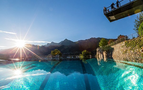 The pool in Scena welcomes you with a dreamy view over the Dolomites and the city of Merano. The perfect place to relax between sun and nature, with a panoramic pool, well-kept spaces and a holiday vibe – every single day.