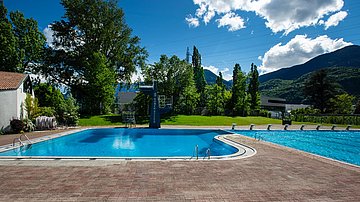 The swimming pool Lana is the perfect place to cool off and relax in summer. Spacious pools, green lawns and shady spots await you for pure chill days under the sun. And between swims… a drink at the kiosk is a must!