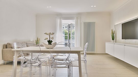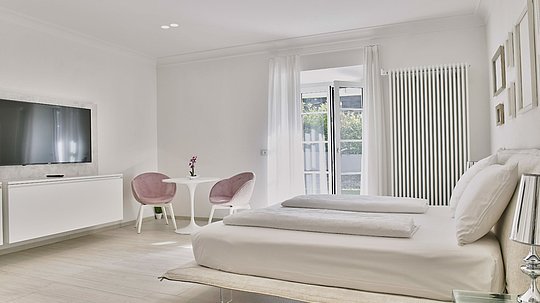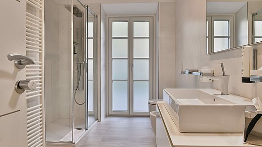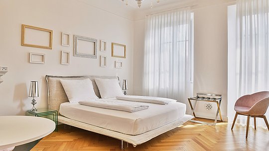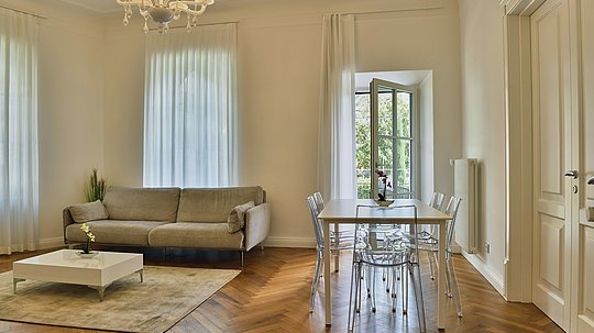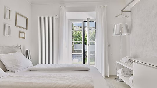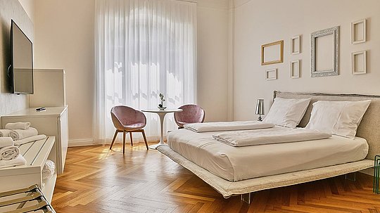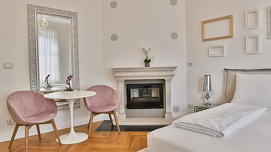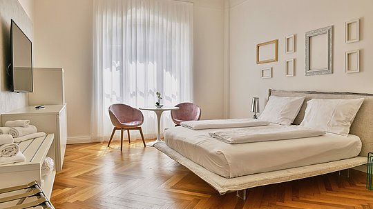 If you are looking for a place where you can feel the freedom and warmth of home at all times, choose Apartment Garden Superior: 130 sqm equipped with all amenities, WiFi connection, an extra-luxury living area with sofa and smart TV, super equipped open kitchen, three bedrooms and two comfortable bathrooms with shower. The room overlooks a small garden terrace, which provides the house with a truly unique atmosphere, perfect for relaxing after a day of shopping, but also for an aperitif or a romantic dinner in the open air. The apartment is ideal for up to 6 people. It is perfect for a family who wants to spend a pleasant vacation, for colleagues on a business trip, but also for a group of friends who want to live together in a relaxing, elegant and cozy oasis in the heart of the city.