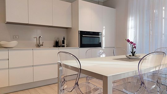 Simplicity and refinement, the Apartment Junior Superior is a small apartment designed for all guests who aim for essentiality without sacrificing comfort and details. Whether as a couple, with your little ones or with friends, everything is designed to make your stay easier: two double bedrooms with King Size mattress, a full bathroom with bathtub and shower, a small but very useful service bathroom and the fully equipped kitchen. There really is everything, including a Nespresso coffee machine - the taste of real Italian coffee at your fingertips!