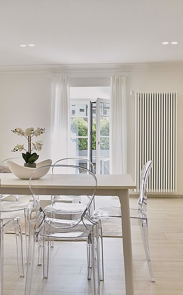 If you are looking for a place where you can feel the freedom and warmth of home at all times, choose Apartment Garden Superior: 130 sqm equipped with all amenities, WiFi connection, an extra-luxury living area with sofa and smart TV, super equipped open kitchen, three bedrooms and two comfortable bathrooms with shower. The room overlooks a small garden terrace, which provides the house with a truly unique atmosphere, perfect for relaxing after a day of shopping, but also for an aperitif or a romantic dinner in the open air. The apartment is ideal for up to 6 people. It is perfect for a family who wants to spend a pleasant vacation, for colleagues on a business trip, but also for a group of friends who want to live together in a relaxing, elegant and cozy oasis in the heart of the city.