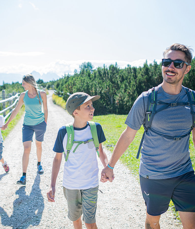 The Merano 2000 hiking area directly above the spa town is ideal for a family holiday in Italy. The hike from Falzeben to Piffinger Köpfl takes just under an hour and is easy to do. Once there, the Piffinger Köpfl mountain hut and the Panorama Bistro await you for an enjoyable break. At the Outdoor Kids Camp, the little ones can let off steam on educational facilities, while the Alpin Bob, the longest Alpine coaster in Italy, promises a speedy descent and fun for the young and the old. The hiking trail, the Outdoor Kids Camp and the Alpin Bob are open all year round and are therefore suitable for both a summer and winter family vacation.