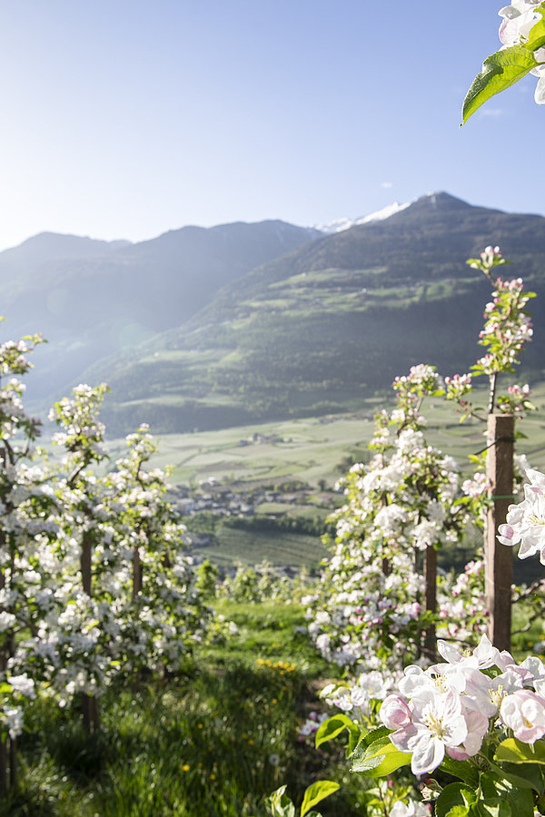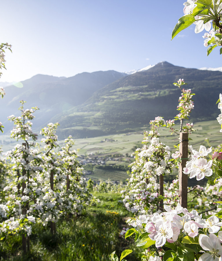The many apple orchards in the South Tyrolean valleys not only provide us with delicious produce every autumn, but also a wonderful spectacle of colour every spring. Between the end of March and the beginning of May, millions of buds open almost simultaneously, transforming the Adige Valley between Merano and Bolzano into a sea of white and pink blossoms that is in no way inferior to the famous cherry blossom in Japan. A trip to the apple orchards of South Tyrol is a must during your holidays in nature. Cycling tours on the well-developed network of paths through the orchards, which start in Merano, are particularly popular. As a little help to get you started, guests of Wosching Haus receive a discount at the Papin Sport bike rental at the Merano train station.