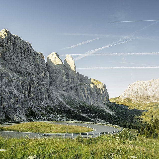 The Sellaronda is a legendary circuit around the Sella massif in the Dolomites; it can be completed on the road in summer and on ski slopes in winter. If you want to go motorcycling in the Dolomites, you shouldn't miss out on this highlight! The Sellaronda is around 60 kilometres long and runs over 4 Dolomite passes: the Gardena Pass in the north, the Campolongo Pass in the east, the Pordoi Pass in the south and the Sella Pass in the west.