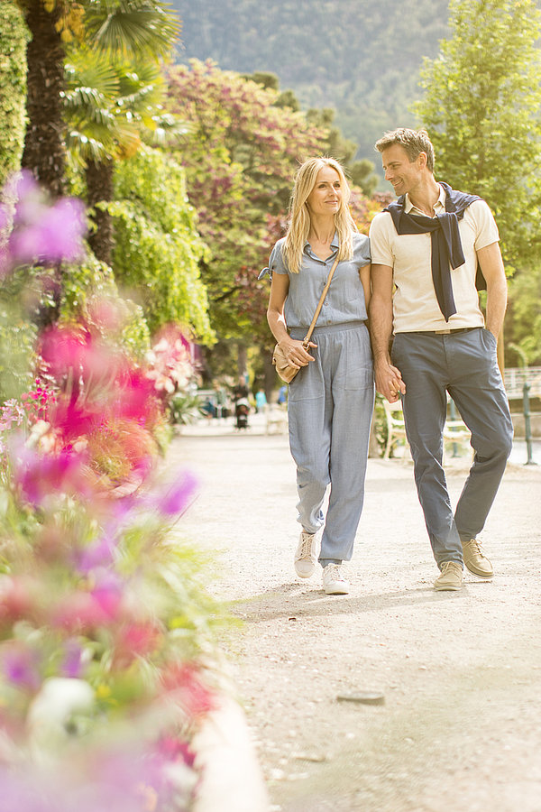 Trauttmansdorff Castle is surrounded by the homonymous gardens, which are among the most beautiful in the world and have won international awards. Covering an area of twelve hectares, there are trees, flowers and cultivated plants from all over the world to marvel at from spring to autumn. There are also highlights such as the Sounding Stones, the Botanical Underworld, the Garden for Lovers, the glass house with orchids, the barefoot path, and the beehive, as well as two outlook points. Children particularly enjoy the animals in the garden, including dwarf goats, alpacas, guinea pigs and dwarf silkie chickens. Dragonflies, Japanese carp, and the odd frog frolic around the small pond, where tired walkers can relax with a coffee or ice cream.