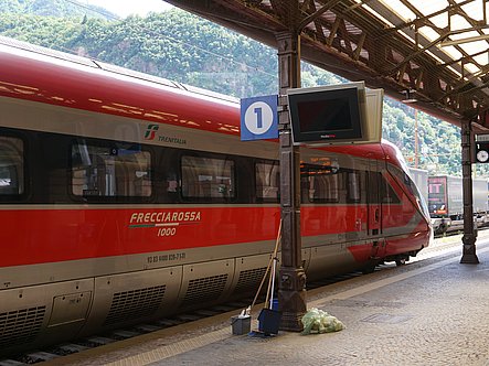 DB/ÖBB and Trenitalia trains (e.g. Frecciarossa) take you from many starting points to Bolzano railway station. From there, you can reach Merano with the half-hourly regional train.