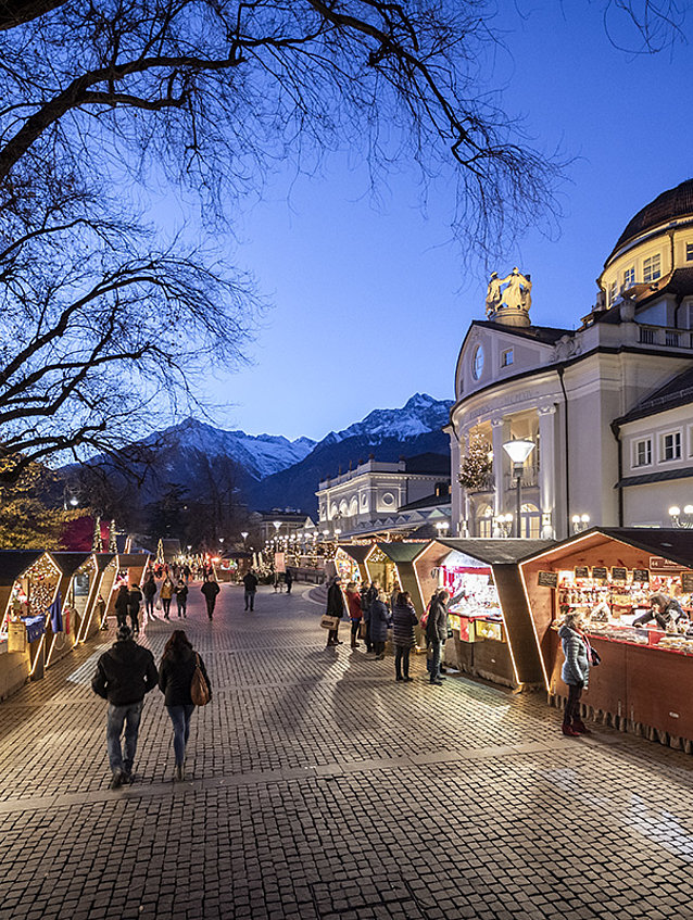 Il periodo festivo nella città di cura è molto speciale e dura dalla fine di novembre all'inizio di gennaio. Il centro della città è addobbato a festa, la neve scintilla sulle montagne e c'è molto da scoprire: la meta principale è naturalmente il mercatino di Natale (di cui parleremo più avanti). Ma il Natale a Merano prevede anche un ricco programma per bambini ed eventi in città e nei dintorni per soddisfare ogni interesse. Conoscete le usanze e le tradizioni natalizie alpine e trascorrete una vacanza tranquilla e contemplativa.